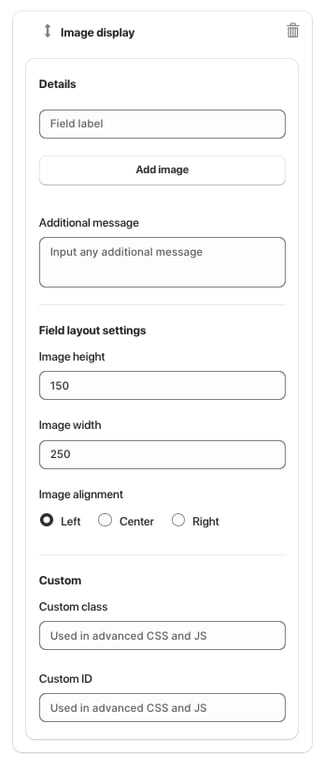 Image alignment – choose how the image is aligned within the form: Left, Center, or Right.