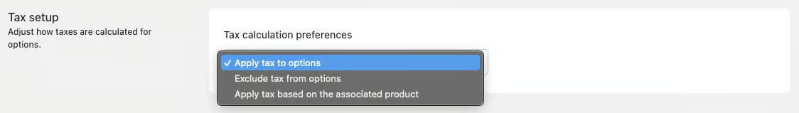 12. Tax setup: Control how taxes are applied to product options in the store.