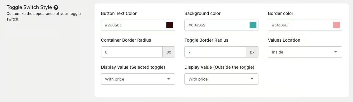 14. Toggle Switch Style - Customize the appearance of toggle switches, including colors, border radius, and the placement of values.