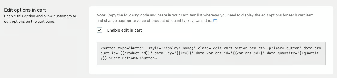 Enable Edit in Cart: Allow customers to modify product options for items in their cart.