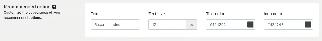 12. Recommended option - Customize the appearance of recommended options, including the text, size, and color.