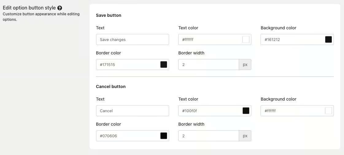 9. Edit option button style - Customize the appearance of action buttons while editing product options on the cart page/drawer.