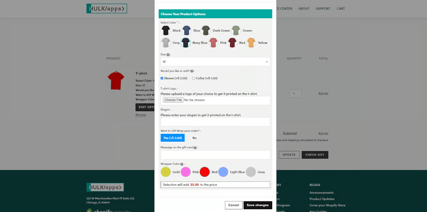 - The color field in the Hulk Product Options app lets our advanced members pick the color as a value in the storefront.