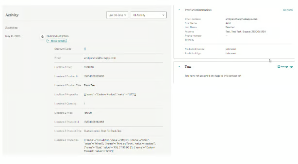 (3) As soon as the customer places an order, their contact details will be fetched in your subscribed Audience Data. Along with their purchase details.