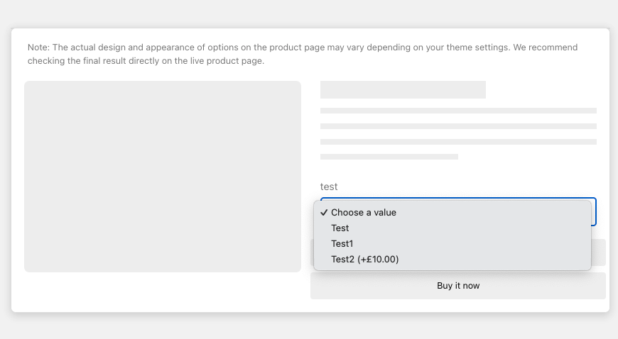 Once the customer makes a selection, the selected value replaces the placeholder, remaining visible in the dropdown field until a new choice is made.