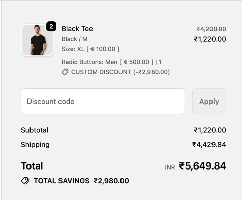 NOTE: If the new draft order flow is not enabled within the App setting, the Automatic discount only applies on the Product base price. In order to apply discount on total amount of order that inlcludes add on charges, please enable below from Settings>>General Settings>>Use new draft order flow
