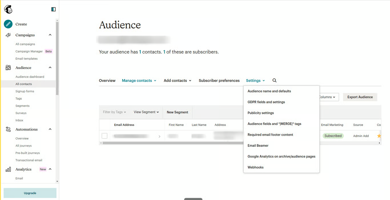 - Go to Audience and select your audience.