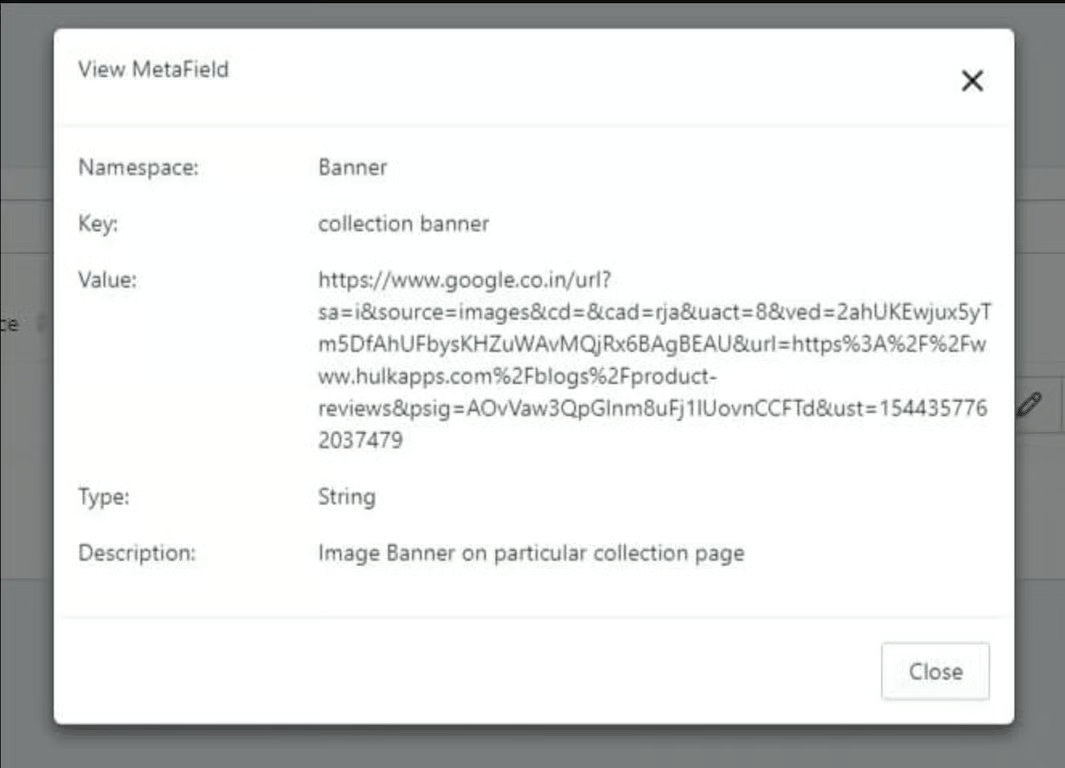 Created Metafield will look similar to this: