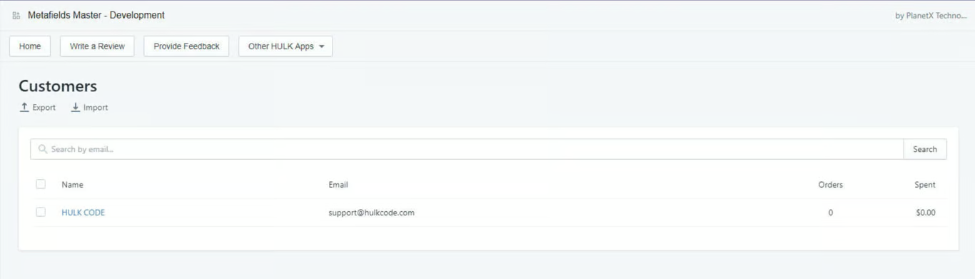 In this tutorial customer’s associate name is displayed on the collections page of the Shopify store. To start, navigate to the Master Metafield application, and in Customer look for the customer to add metafield for. In this example, a customer is chosen to display its associate on it.