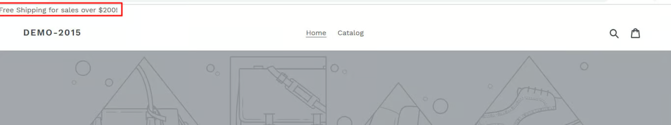 In this tutorial, a global promotions bar like "Free Shipping for sales over $200!" is added to the top of the Shopify store.