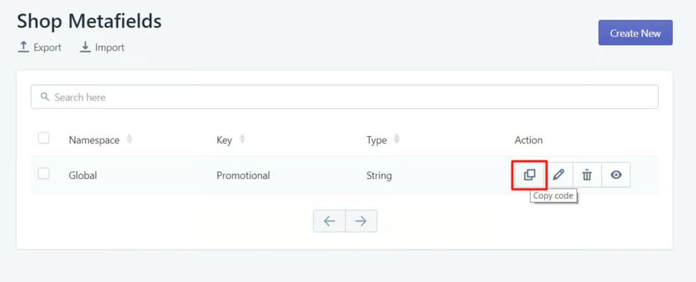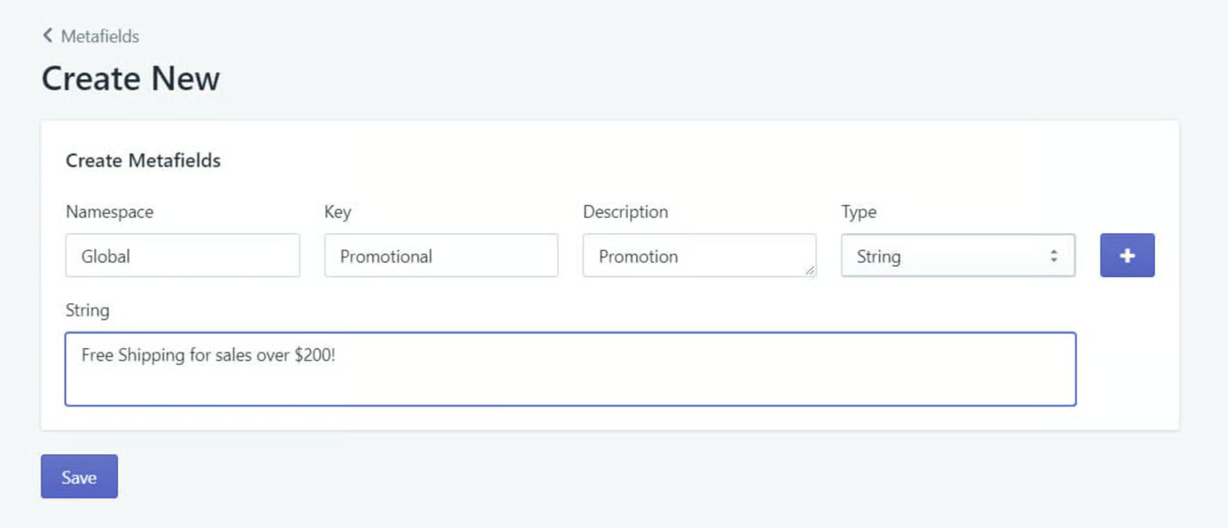 To start, navigate to the Metafields Master application, and in Shop create a metafield.