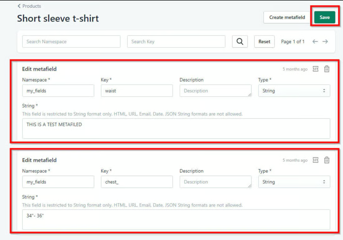 - To edit the metafields in bulk, simply start making the changes to the metafields values and click on the Save button after making all the preferred changes.