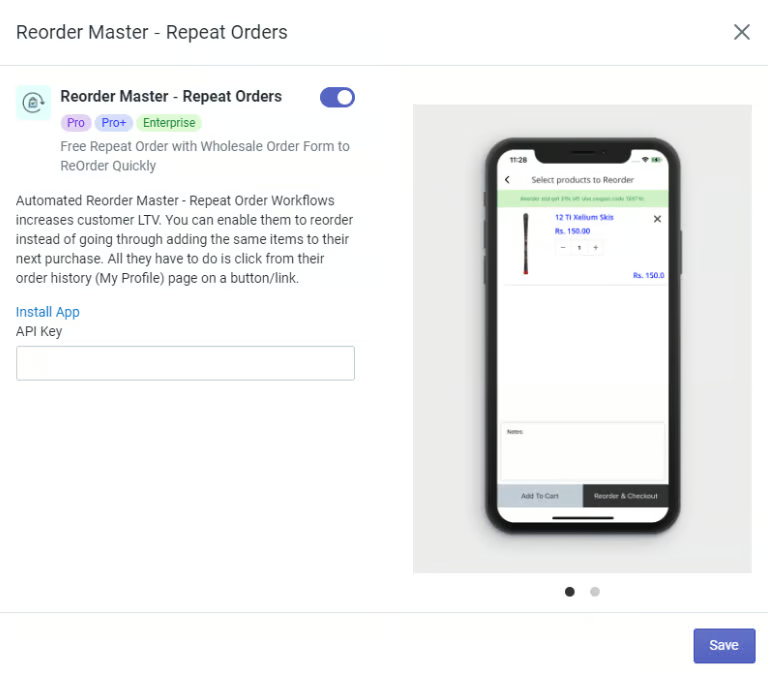 Instructions to enable Reorder Master ‑ Repeat Orders with Hulk Mobile App Builder