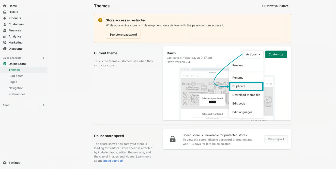 - We always recommend making a backup of the theme on which you want to install/configure our app and do so for the mentioned copy (this is to avoid code conflicts and other errors that can either slow down your existing store’s speed or make it unusable).