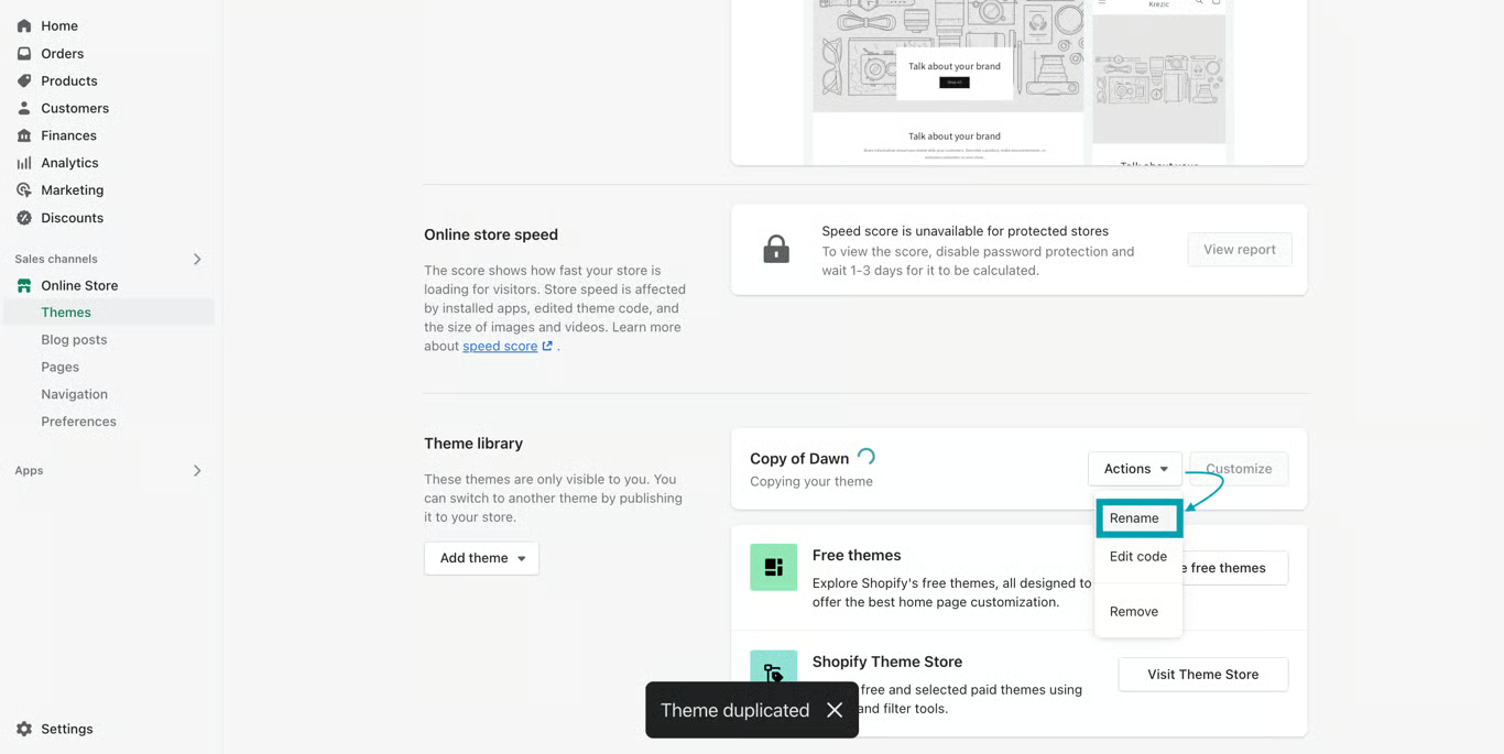 Rename the theme as per your preference by clicking on Action > Rename