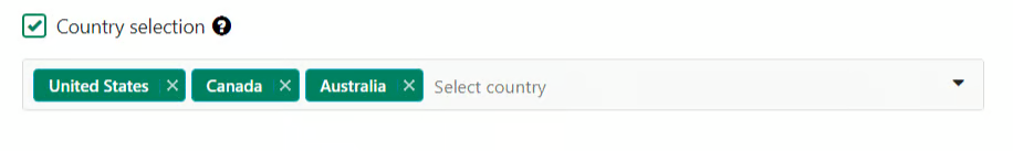 Country selection: Use this option if you wish to activate the offer only to specific countries, if this field is left blank - offer will be active worldwide/globally.