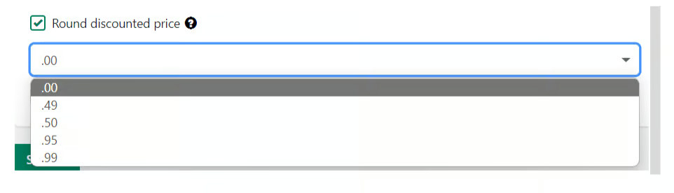 Round discounted price: Selected the round decimal digits to apply on the discounted price.
