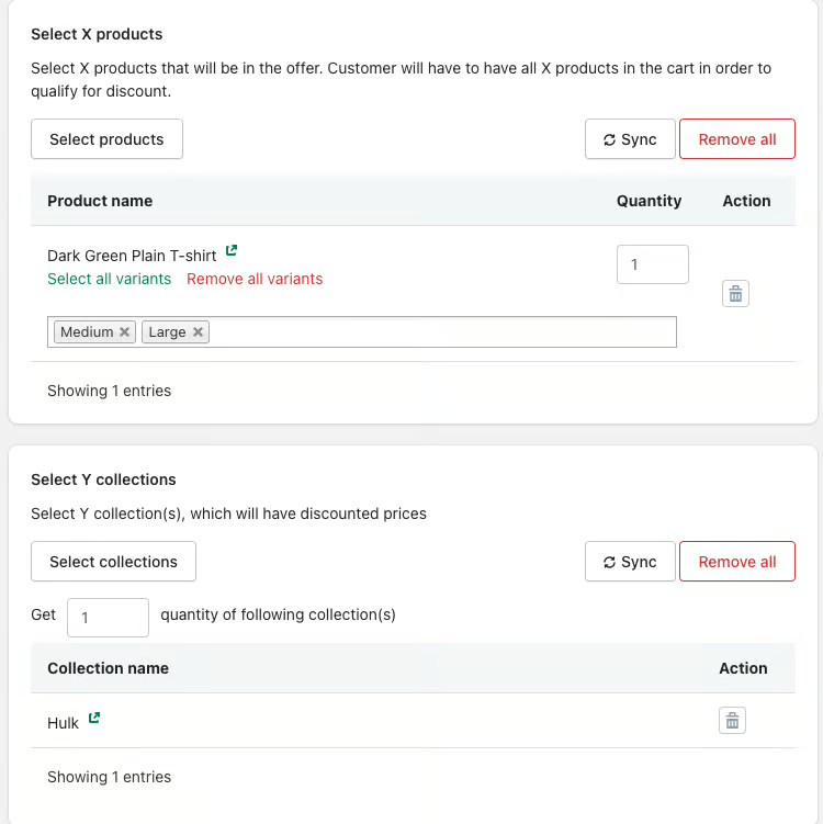Example: Buy Any Product from Collection X, Get Any Product from Collection Y at 20% Off
