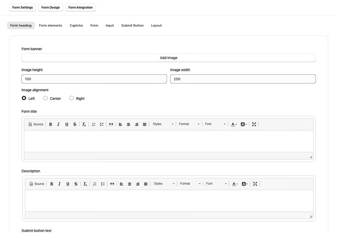 2. Edit the “Form Title”, “Description”, and “Submit Button Text” under “Form Heading”