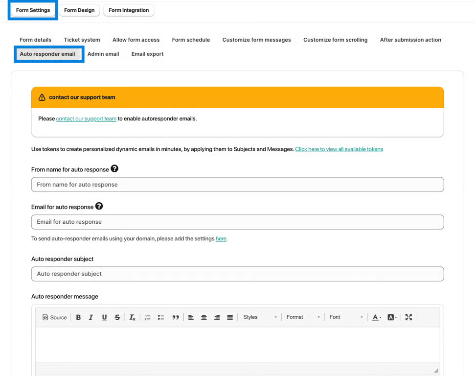 Note: In case you wish to disable the auto-responder email sent to your users, please uncheck the checkbox next to "Send submission email to the user" as shown below: