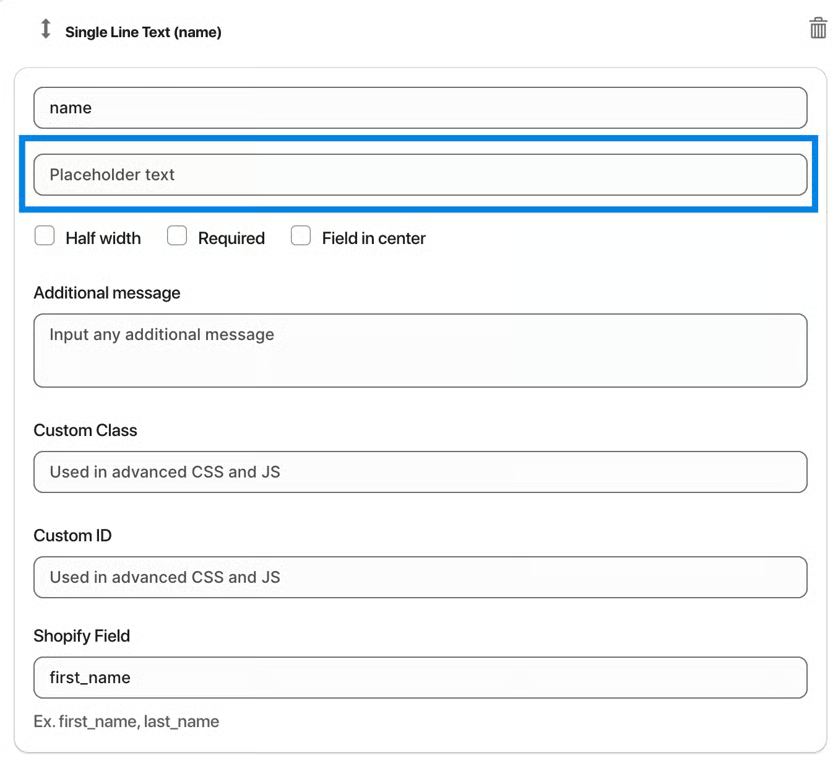 Placeholder text within a form field makes it easier for people to remember what information belongs in a field, and to check for, and fix errors Placeholder text, located inside a form field, is an additional hint, description, or example of the information required for a particular field. These hints typically disappear when the user types in the field.