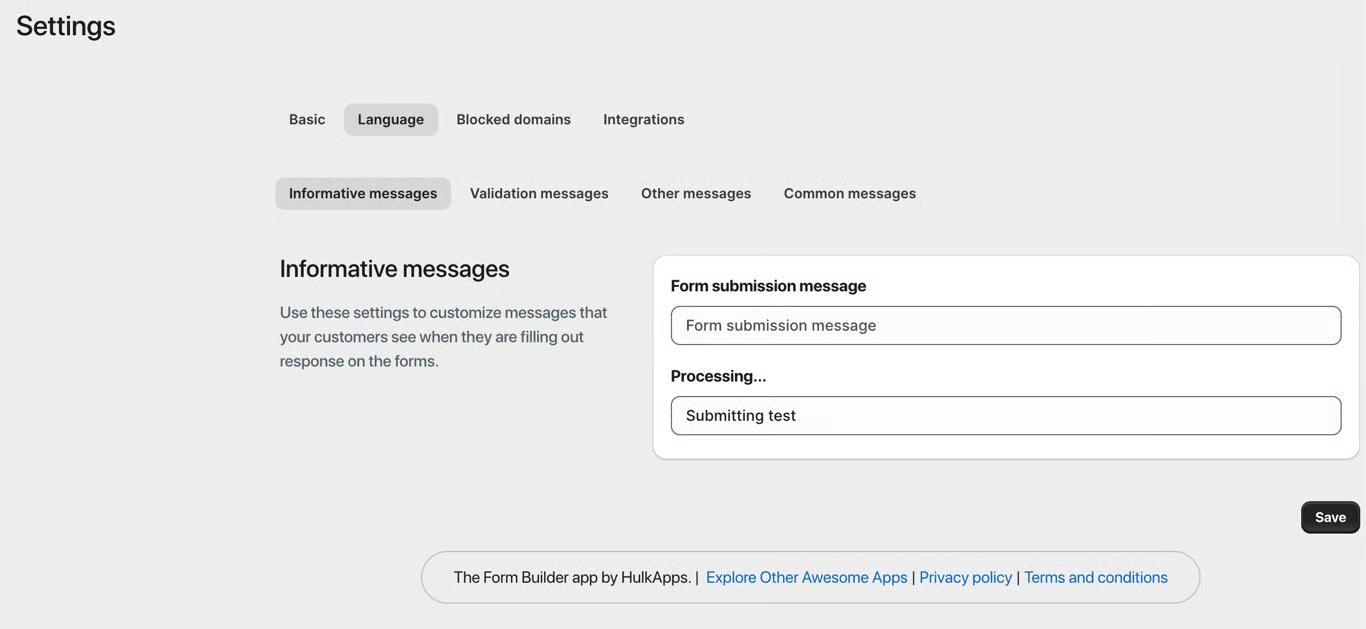Create form in any language. All form messages are customizable (including error messages). Just add the field’s input in the preferred language.
