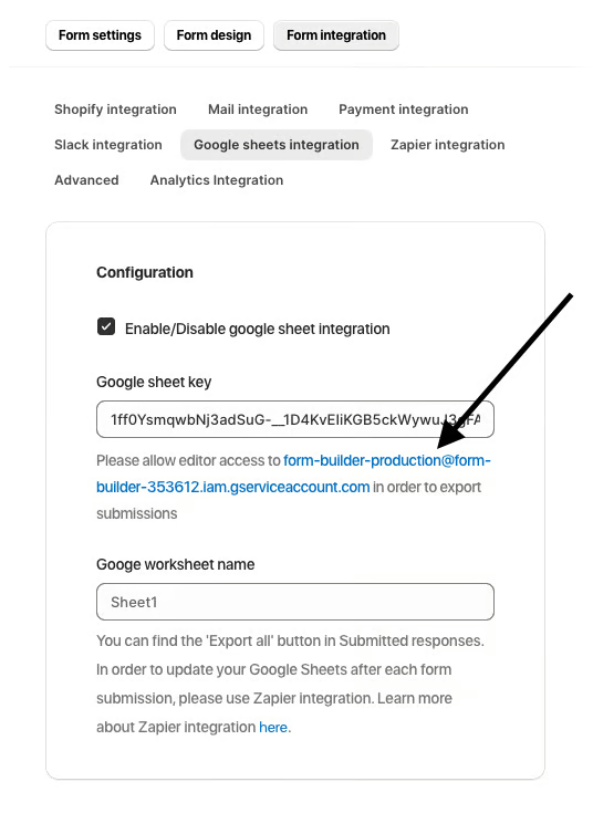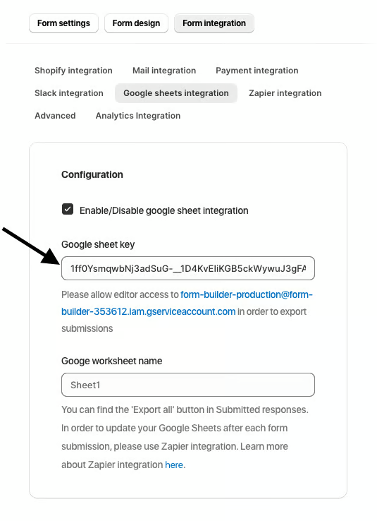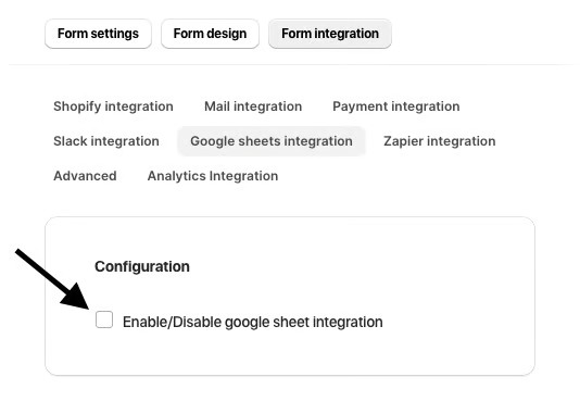 Navigate to Form Integration > Google Sheets Integration in the app to get started.