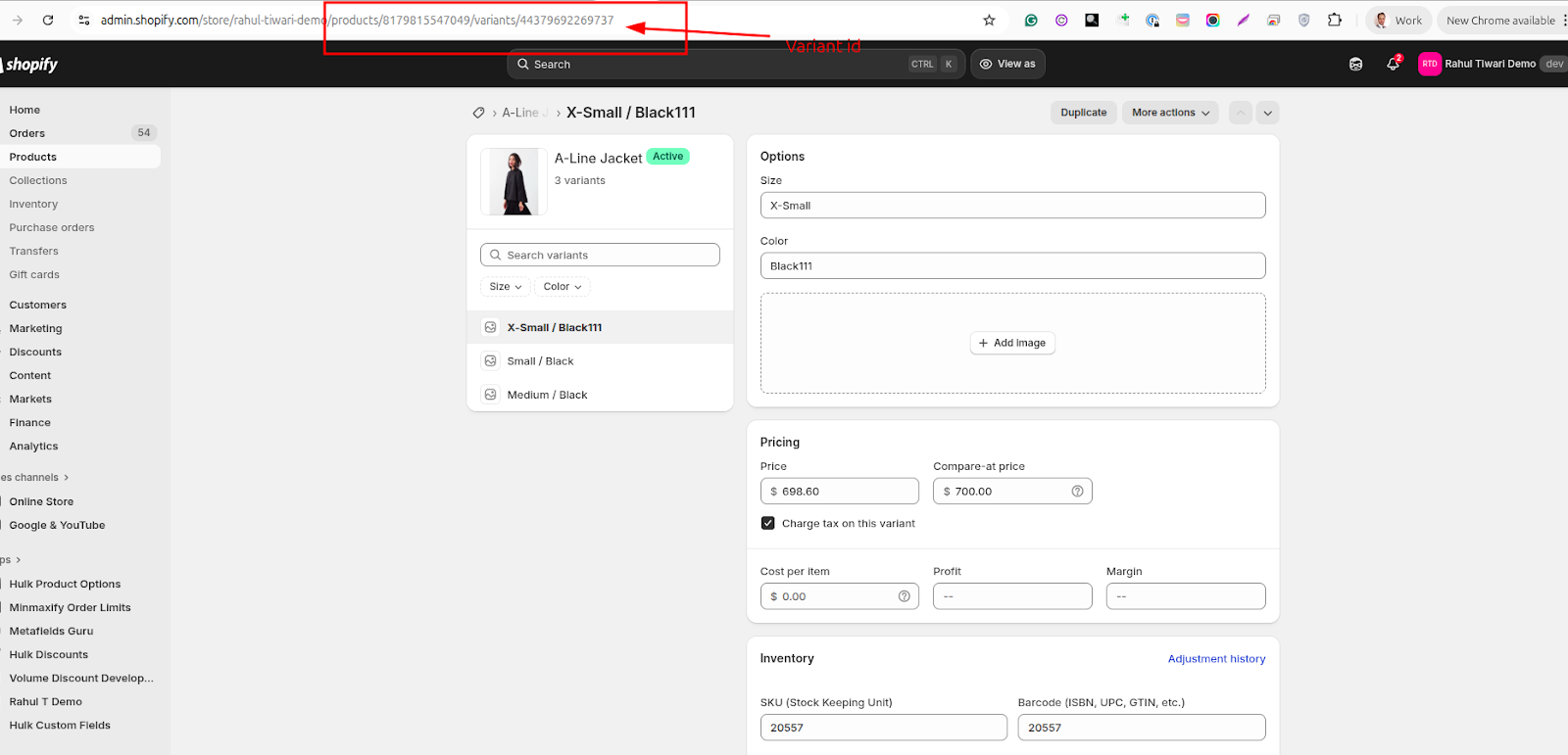Look at the URL — the variant ID is included there