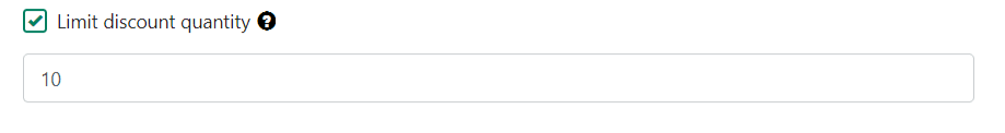 Limit discount quantity: Offer can be valid for the first added quantities only in this box, after that the offer will not be applied or auto-deactivated. Eg. Once a customer buys 10 quantities of products under this offer, then the offer will be automatically deactivated.