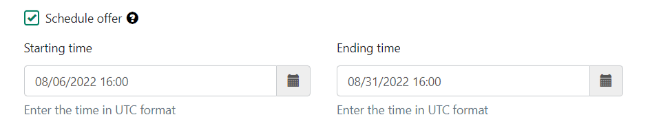 Schedule offer: You can add the start date and end date to schedule an offer in future.