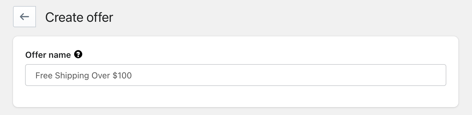 Offer name – Add a unique and descriptive internal name (e.g., Free Shipping Over $100)