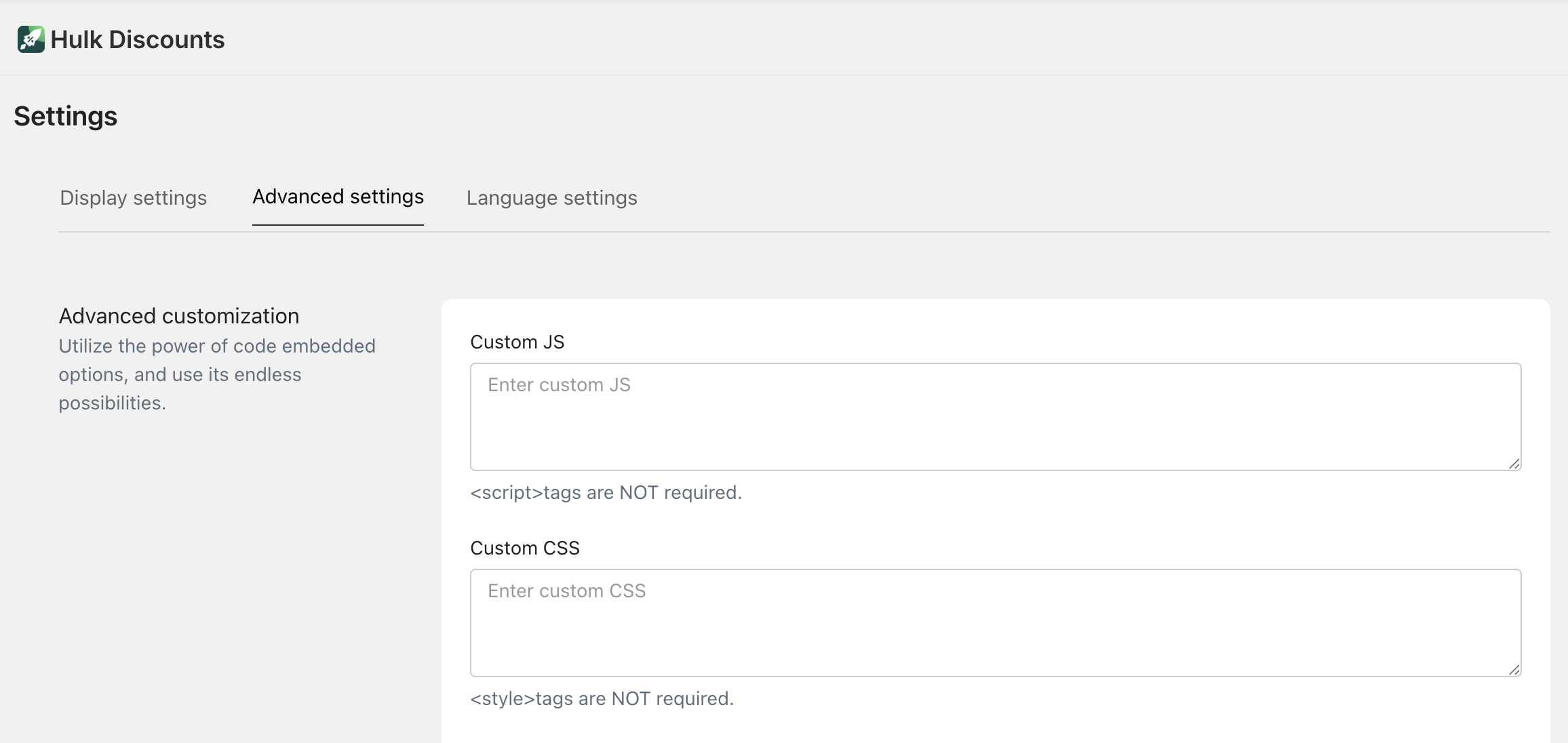 The Advanced Settings section gives you greater control over how offers behave across your store. These settings are designed for merchants who want to fine-tune discount logic, display behavior, and technical details beyond the default configuration.
