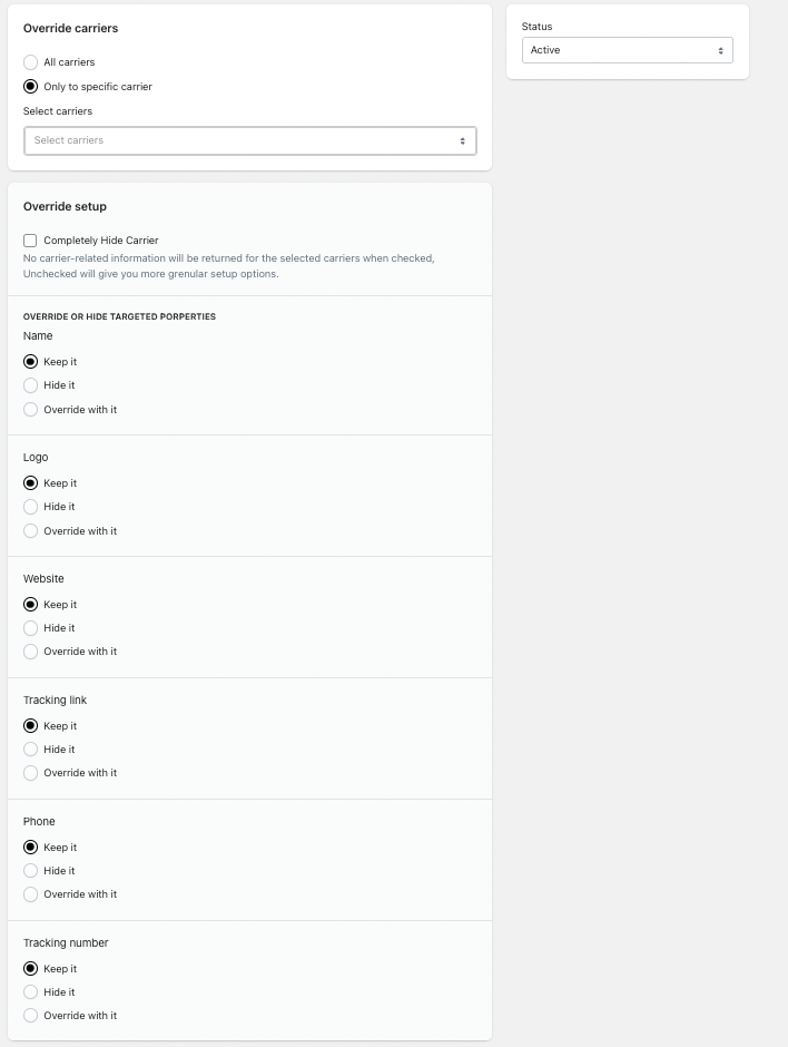 The Carrier Masking Rules feature allows you to override, modify, or completely hide carrier information displayed to your customers on the tracking page.