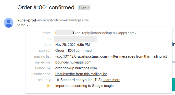 Emails are sent from: no-reply@orderlookup.hulkapps.com