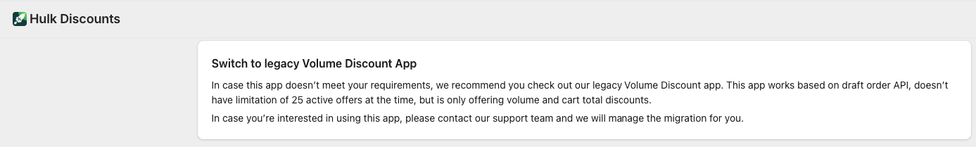 NOTE: Please make sure to request to the Legacy Version under Hulk Volume Discount Bundles app to work with Hulk Product Options App.